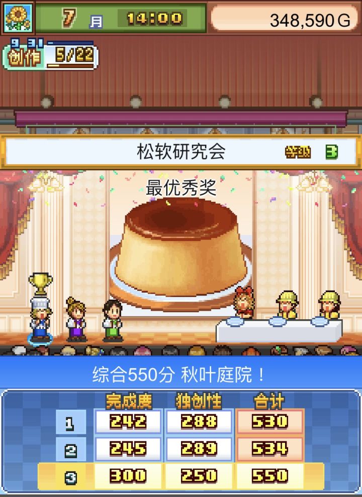 最近在看到论坛看到很多松软研究会3过不去的小伙伴在求攻略,自己最近刚刚过,所以分享一个保姆式过关攻略~【参赛用甜品】:大布丁【需要的材料】:2级布丁基底(南瓜商店直接购买)大盘子(产地太阳牧场达到2级后获得)12级星星曲奇(砂糖系)20级打泡鲜奶(奶油系)【产地】:网络农场【保姆式食谱(请按本食谱顺序放置)】:大盘子+布丁+星星曲奇+打泡鲜奶+打泡鲜奶+打泡鲜奶【重要小提示】:尽量