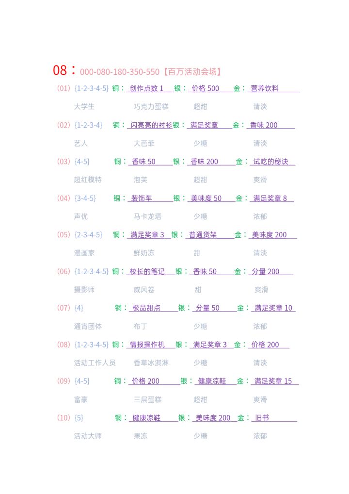 首先我相对于其他挂机大佬来说,游戏时间很短,那我是怎么做到如此高的等级呢?别急,后面会讲,目前已经通关,完结撒花,吧唧吧唧先列表出来会用到的所有食材吧,获取方法移步我隔壁帖子核心基底,树桩年轮蛋糕(用戚风卷做上来),大巴菲(用香草冰激凌做上来,应付前面比赛50级就够了)树桩年轮蛋糕要300级,别问,问就是微笑同食杯3核心食材打泡鲜奶200级够用,保底240比较稳终极巧克力300级够用水
