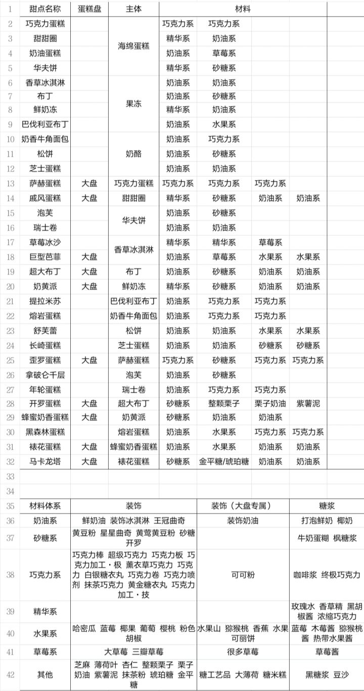 #创意蛋糕店攻略 #创意蛋糕店 将评论里的攻略以图片的形式重新整合了一遍,并附上了自己常用的参考表。
