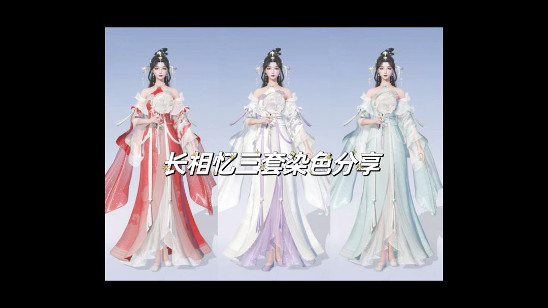 可以染色的游戏最好玩啦!根本停不下来!给姐妹们开始分享我的染色啦~ 今天给大家分享的是长相忆时装,一共染了三套,封面就是三套的样式,详细数据我贴视频里面了,大家有需要的话,自取就好~#浮生忆玲珑