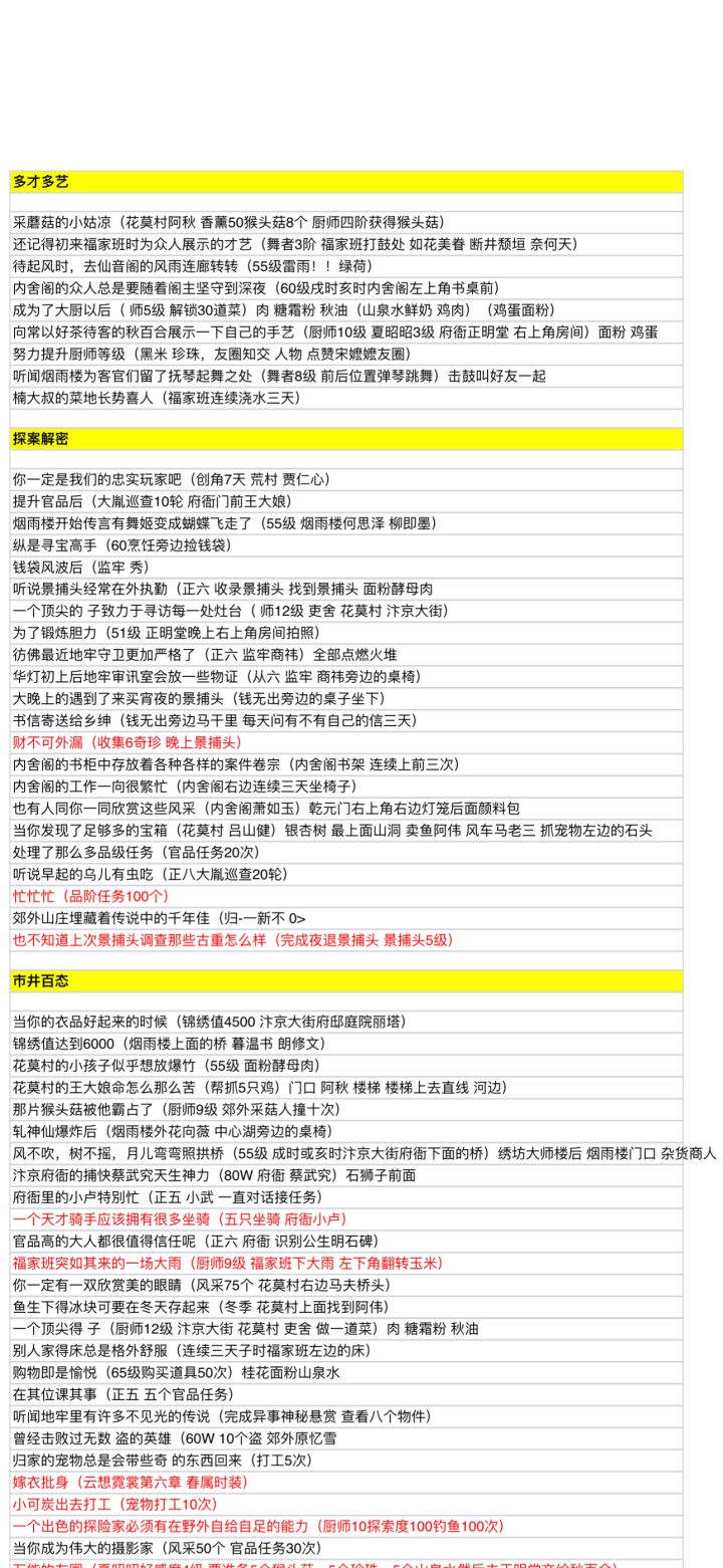 P1汴京大街/烟雨楼/仙音阁/府衙P2花莫村/荒村/郊外/监牢P3乾元门/乾元殿/荒漠遗址/钦天监P4不厌阁#攻略