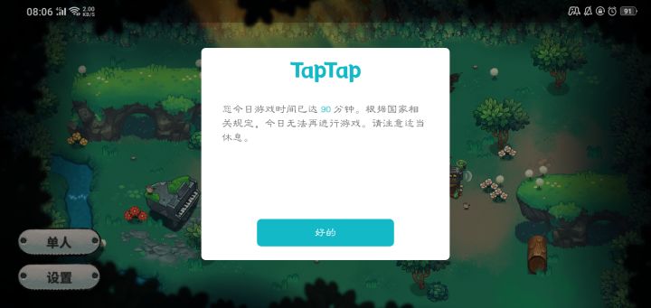 玩了一周全人物解锁 游戏很不错但最近不知道是不是我手机问题我每天早上八点登录会提醒我已经时长达90分钟 连续三天了 请问有没有什么办法