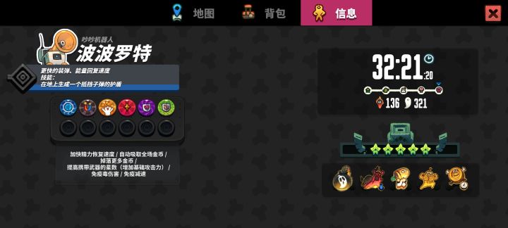 武器和技能低血量伤害加成:3滴血+40%2滴血+45%1滴血+50%竹子状态+100%武器推荐:便捷式电钻、一些公认强力武器、气泡护盾装备推荐:杀怪+盾,红心难度1级盾,其他难度3级盾;减技能CD徽章推荐:技能次数+1、增加武器星星玩法:大招攻击+探路,血量换钱,控制在3滴血内,走位不好可以不换钱。