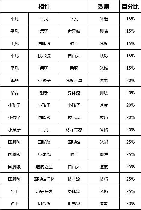 在特训过程中,三位球员类型的选择将影响最终训练效果。搭配好球员组合能够提高特定属性的增长幅度。希望大家可以用得到。
