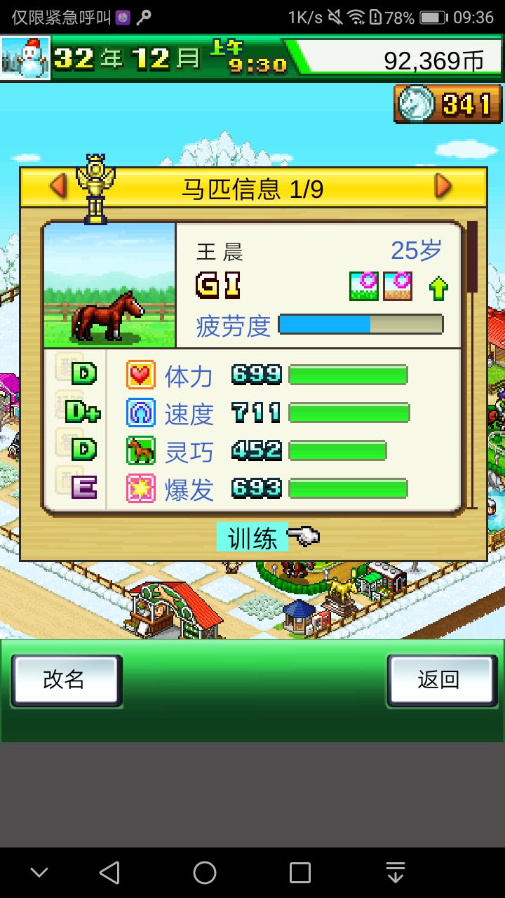 首先说一下这个游戏需要一些存档读档,下面简单说一下游戏一周目通关的攻略+技巧,最终目标:打败极猩猩+开罗君先讲下马的属性属性重要性 速度>体力>毅力>其它(其它其实都不太需要管)so培养马的时候也是主要注意这三个属性。速度体力不说,毅力高,比赛时那条“魂”条就长,当体力耗尽及加速冲刺时会消耗毅力。接着讲配种,配种就是你出一匹种马,和别的母马配,后代可能是种马类型也可能是母马类型。配马时有