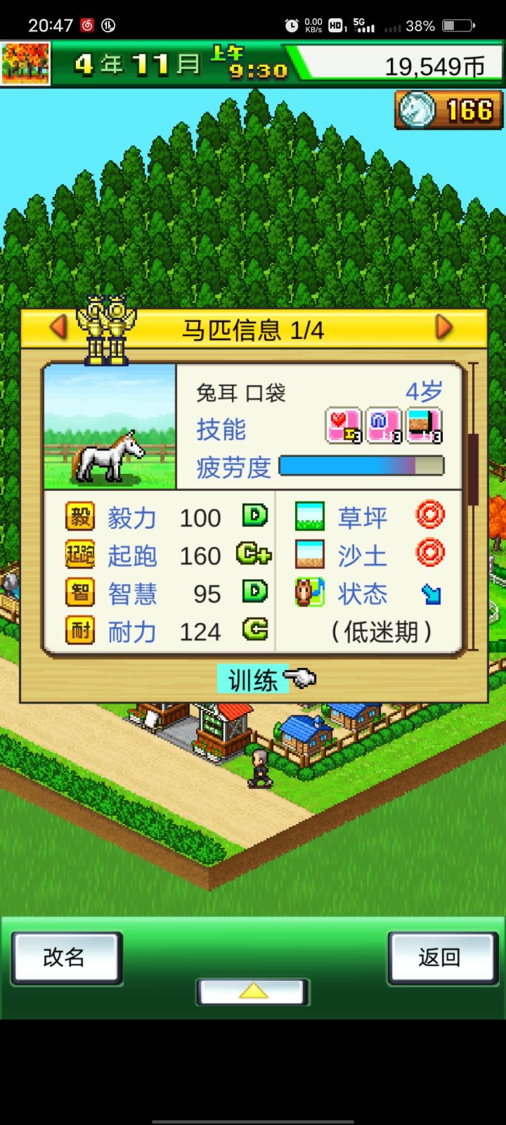 本人其实以前在tgbus上写过这个游戏攻略,你们看到的很多资料都来自那个时候的我……这次重玩很遗憾发现当时写的都不在了,还好硬盘保存有表格,于是重新玩了一遍。如果现在还有人重温这个游戏,可以参考一下这个攻略:1.开局不要买两匹城堡(现在好像叫庄园?)。买一匹城堡。赢下第一场比赛后,就立即研究血统,买兔耳马。我默认你买的都是白马了。2.所有月份都安排比赛,且马都要训练,不要在放牧地休息(前期我就