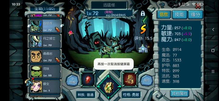 我的力量提升猴子,强化后的技能和没强化的属性一模一样,因为技能是在8号位的原因,是不是最后触发所以前面的技能完全吃不到加成?再看看力量提升的技能效果,对岩甲这些技能肯定有加成吧,但是强化后的属性完全一样,我怀疑把力量提升直接顶掉也影响不了属性,真的离谱,绝了!