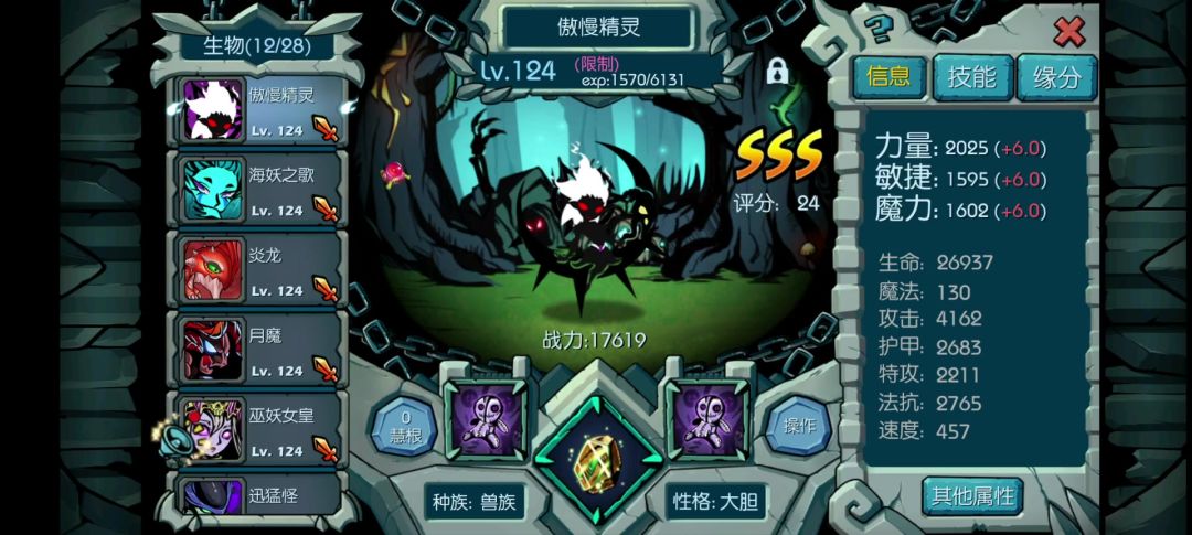 这关对资源多输出强的大佬不算什么,我特意做了平民配置,供大家参考。这关一个大关键点是怎么限制2个海歌,足足80减伤,伤害爆表带追魂。思路如下,海歌可以封,但只能封住一个,速封攻封都是到绿龙身上,法封和灵魂封都是在7号位海歌身上。我的思路是暗杀秒杀7号位海歌,然后法封6号位海歌(所以法封速度必须比暗杀慢)接下来请看怎么秒杀80免伤海歌 我用的他,现做的,没兽族进阶石养暗杀兽,这属性平平无奇