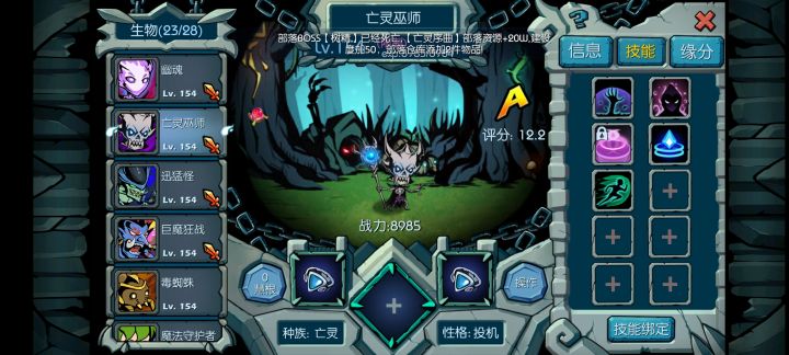 点开生物面板,点击操作按钮,里面有【刷新成长】消耗一个刷新石,重置生物的3维数值【性格转换】消耗一个性格宝石,重置生物的性格【装备孢子】有对应属性面板的7种不同孢子,相同种类孢子最多为2个【生物转生】将生物重置为1级,返还进阶石,精炼资源,不返还孢子【异性换色】消耗换色石头,任意挑选一种颜色【皮肤】更换生物的皮肤,不同皮肤增加不同属性或者技能,某些生物的皮肤加成非常强力!【精炼】提升
