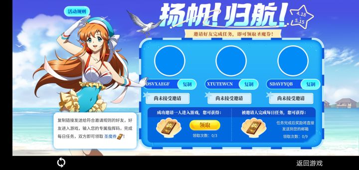 做完任务资源还是挺多的「无尽冒险季」开启啦,全新年度玩法「幻灵战记」上线,登录即得【SSR杰克船长】,进入游戏即送圣魔券!点击链接进入梦幻模拟战,随克丽丝共赴梦幻航程!https://www.zlongame.com/next/actv/27/2024/recall0416/share/index.html?roleName=%E7%BE%8A%E6%8F%90%E7%9D%A3&serverN