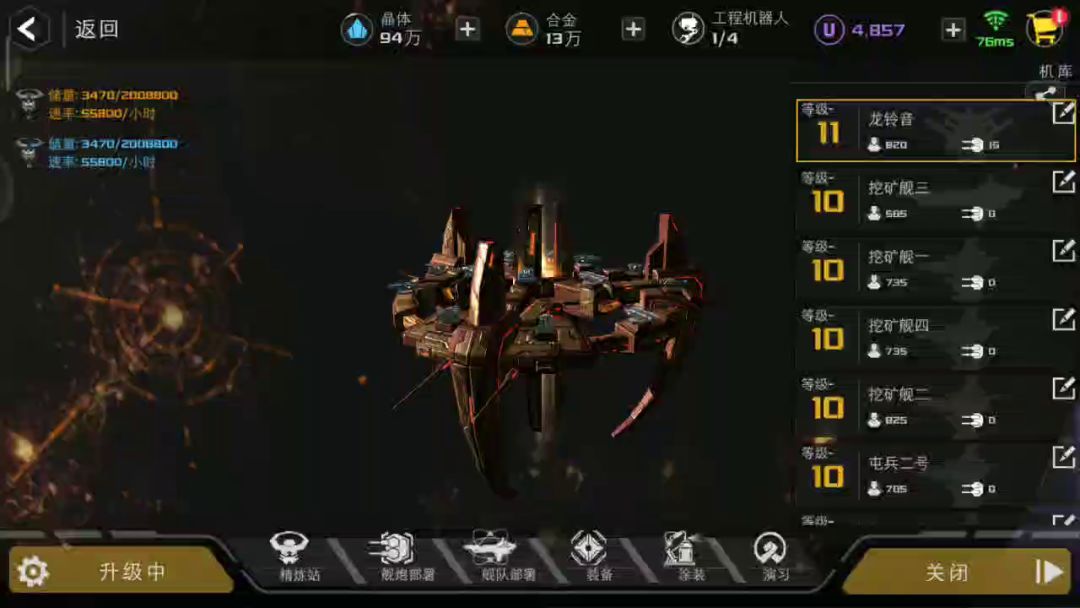看了一下殖民舰采集,跟装备啥关系也没有啊,辛辛苦苦升级的装备都没生效,还咋玩,最近殖民舰精炼站才升级到11和满级有一个,精炼站没满级,就出现图上状况了,(同时采集的,但是没看出加速装备作用)。星系11采集,,感觉也是没作用