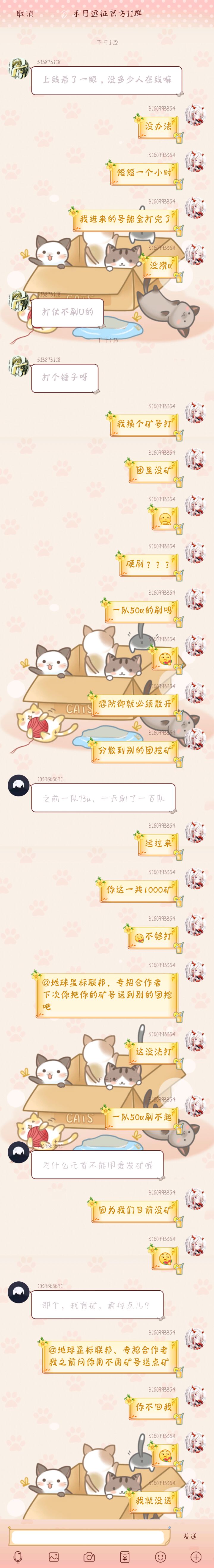首先我想问一下管理小g,请问您从我记录里看到一丁点交易的话吗?请问我自愿送矿算交易吗?第二,这个游戏不能开玩笑了吗?馒头因为开个玩笑被踢,我因为旁观被踢?那么请您告诉我,您的远征天天卡bug算不算开玩笑呢?我可以理解为那不是开玩笑就是因为你们服务器不行呢?我充的钱(虽然不多,五六百的样子)都被你们吃了而不是维护服务器呢?(只是论证,没有针对的意思)如图第三,我认为官方是要维护新玩家,留住老玩家,