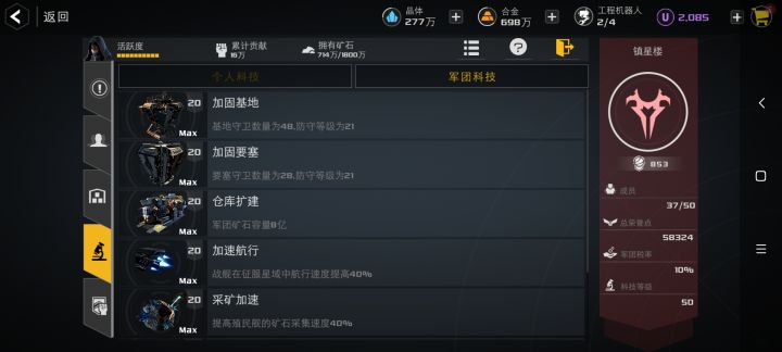 镇星楼满级科技军团招活人,挖矿提高40%速率,觉得这游戏好玩的都可以来,团里有人会培养萌新,学习工作第一游戏第二