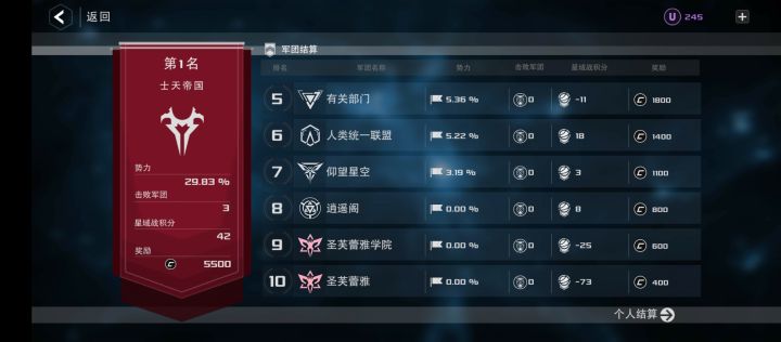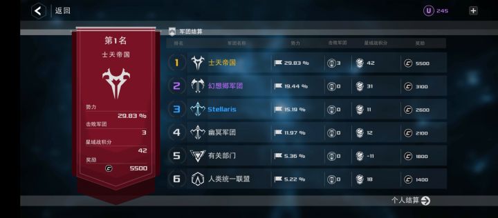 更新后一线首次第一幻想阵营:士天 幻想乡 有关敌对:逍遥 圣芙 学院赢不是靠嘴说的!有图有真相,以后每次都发,看看到底谁赢得多幻想阵营招人!如图三,想要大量贡献和蓝图黑金的,加入我们!所属军团:士天帝国,有关部门,全能之眼,幻想郷军团,第二银河,速子科技,星迷若望,各友军团及中立团#截图记录开拓之旅#游戏安利#游戏推荐#游戏讨论