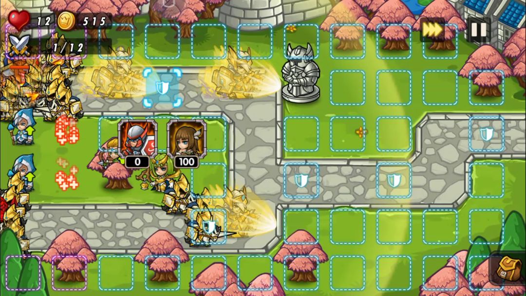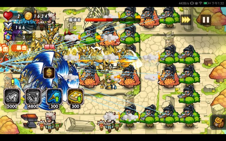 开局先这样然后使劲造树打boss之前造成这样,攻击集中时候用攻速加倍道具然后就过了
