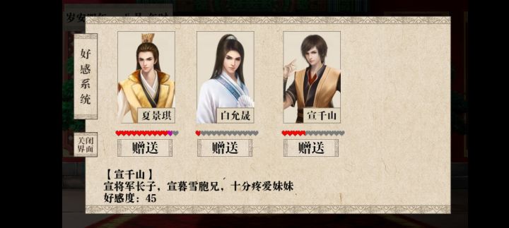 刷好感小技巧。初期没钱不要出门乱晃,除了去商行就呆在家里刺绣。刺绣选择敷衍,尽快弄出东西送主母。度过前期后刷绣坊,也一定一定要选择敷衍。一个小时能弄出东西千万不要三个小时。基本上两天全部家人好感刷满。
