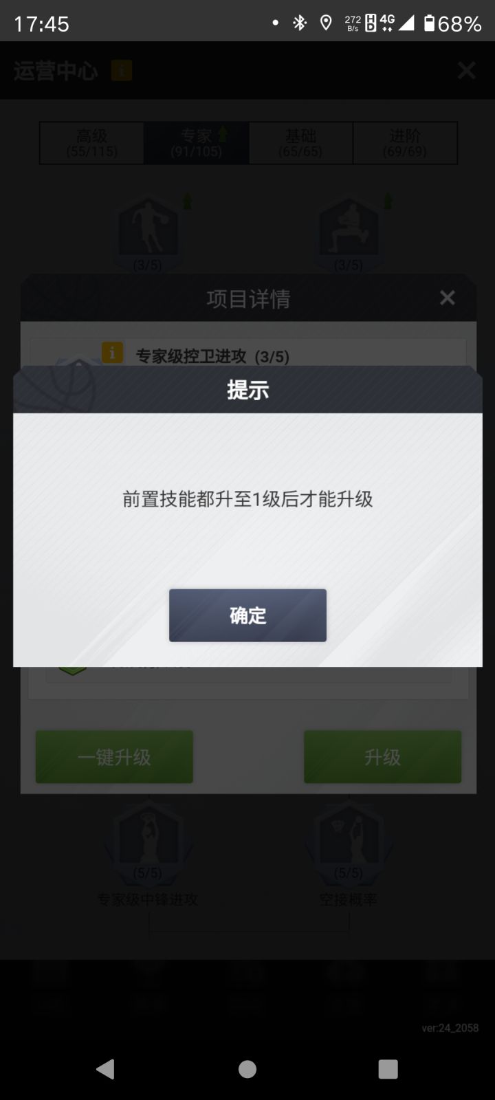 升级专家控卫进攻,本身是第一行技能了,没有前置技能,但是升级就要求完成前置技能。。。