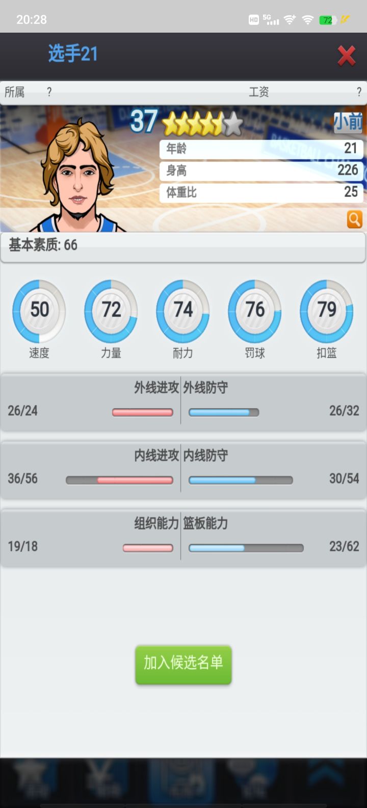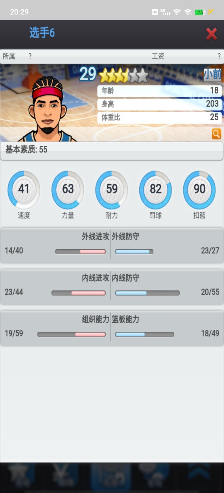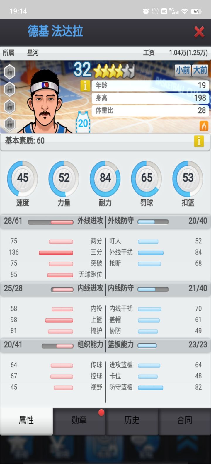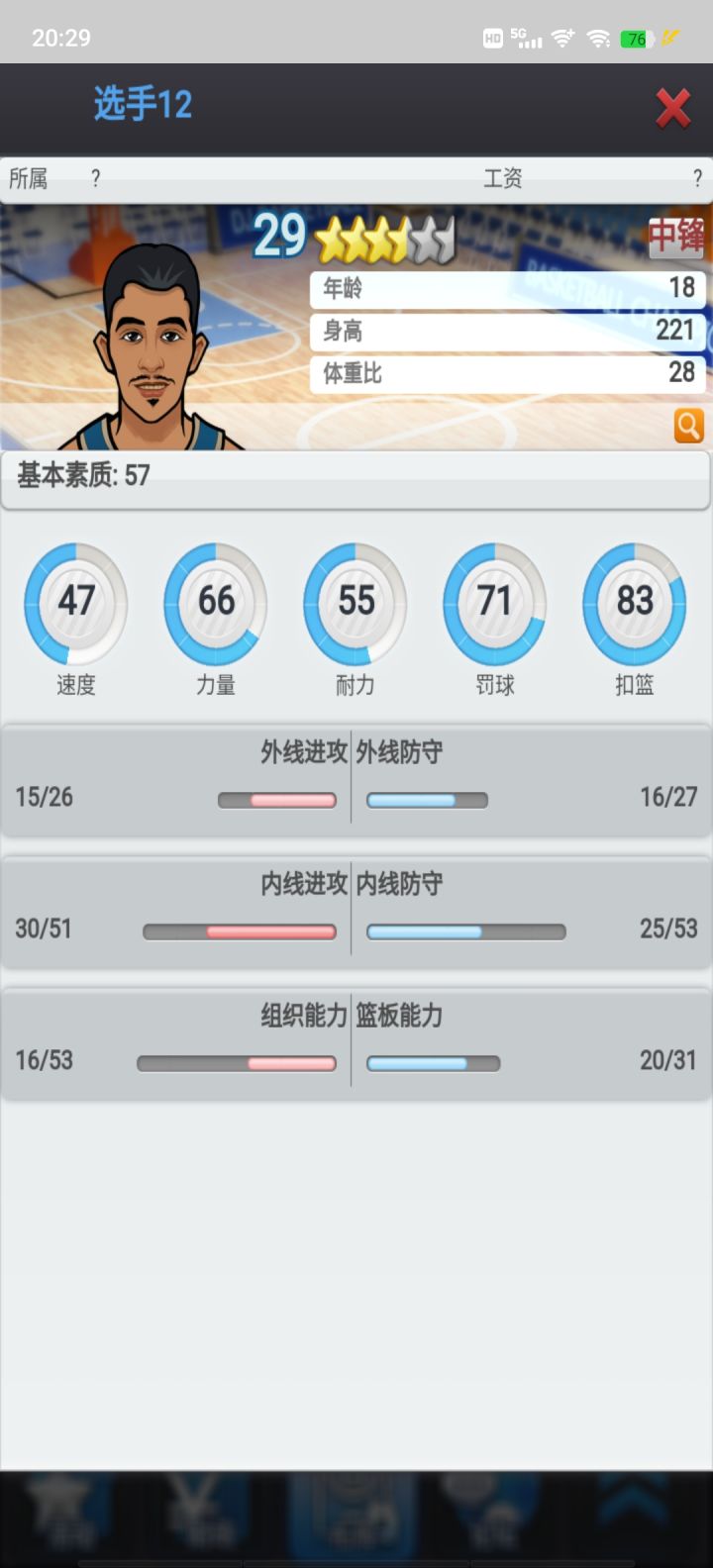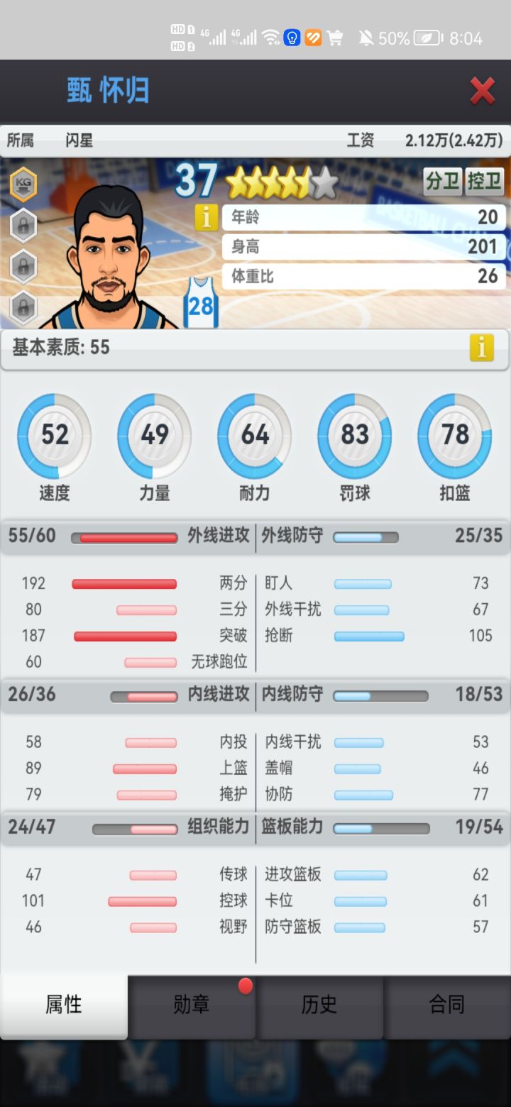 图二是基本素质,速度/力量/耐力是主属性对星级评分和薪资影响极大(都可以通过打章增加,最高23点,上限100,速度/力量勋章代价极大)。
