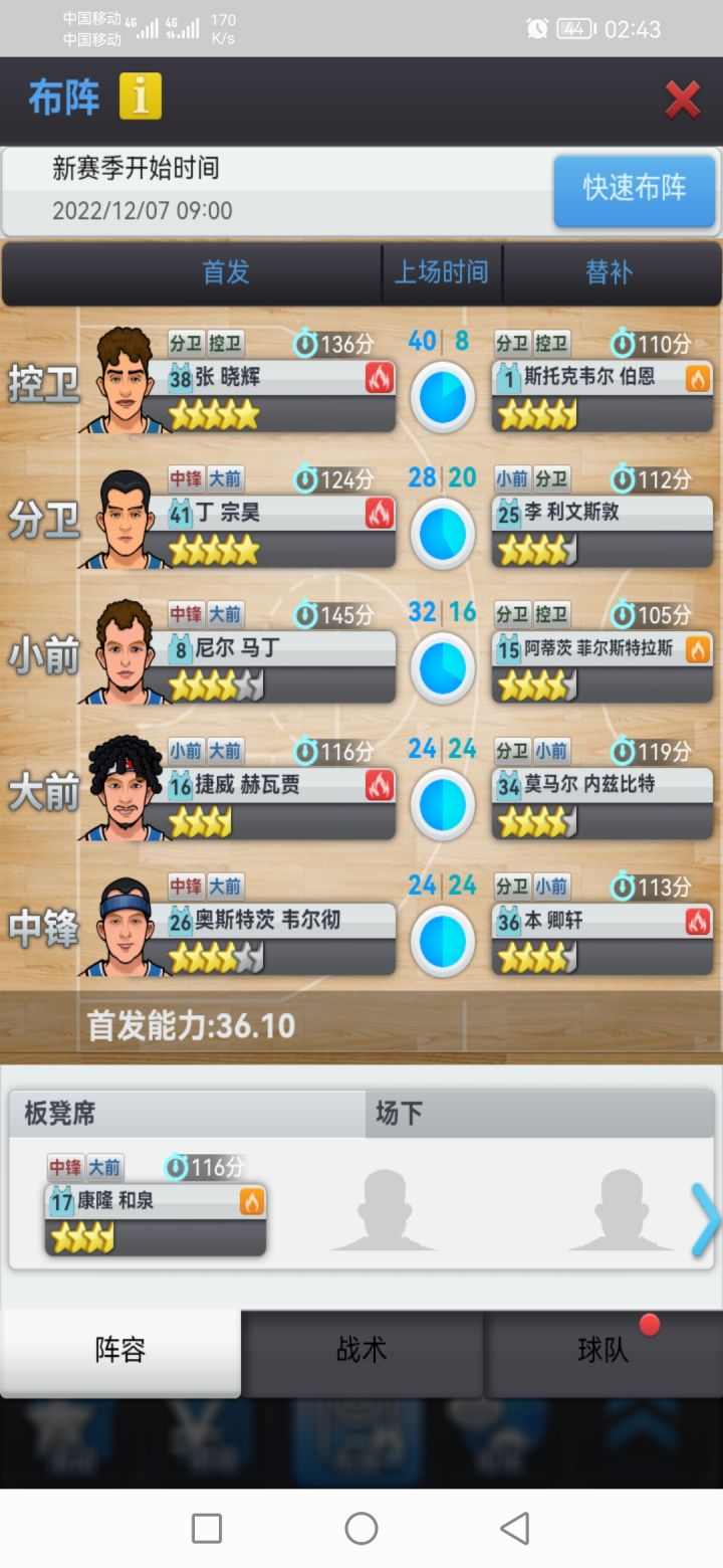 (在潜力足够下,潜力不够适当调整,例如图六丁宗昊防守潜力不足直接搜哈盖帽)。