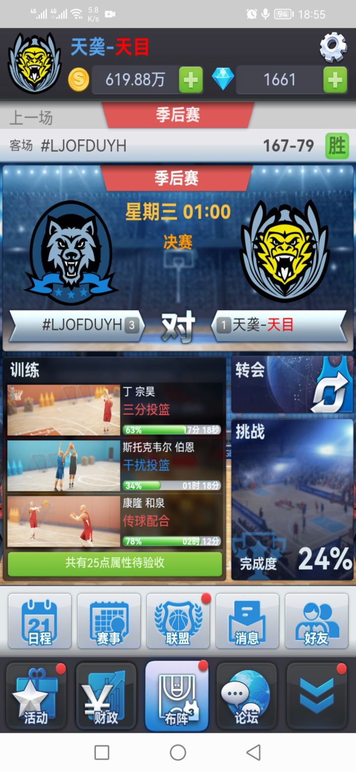 还有一种情况是当潜力还剩一点,离训练上限还有一定距离,如此可以领10点日训和周训,一下多出30多点属性,减少怼属性的时间,多是一件美事。