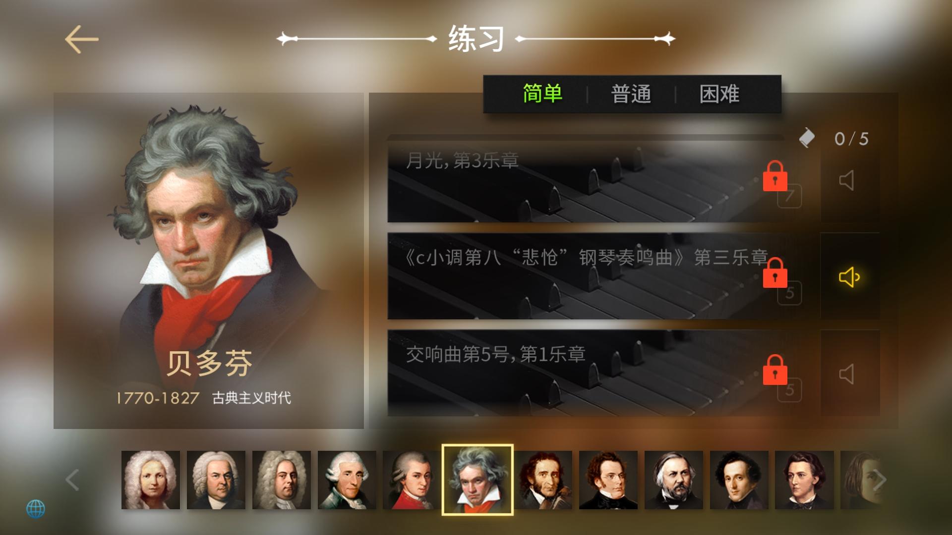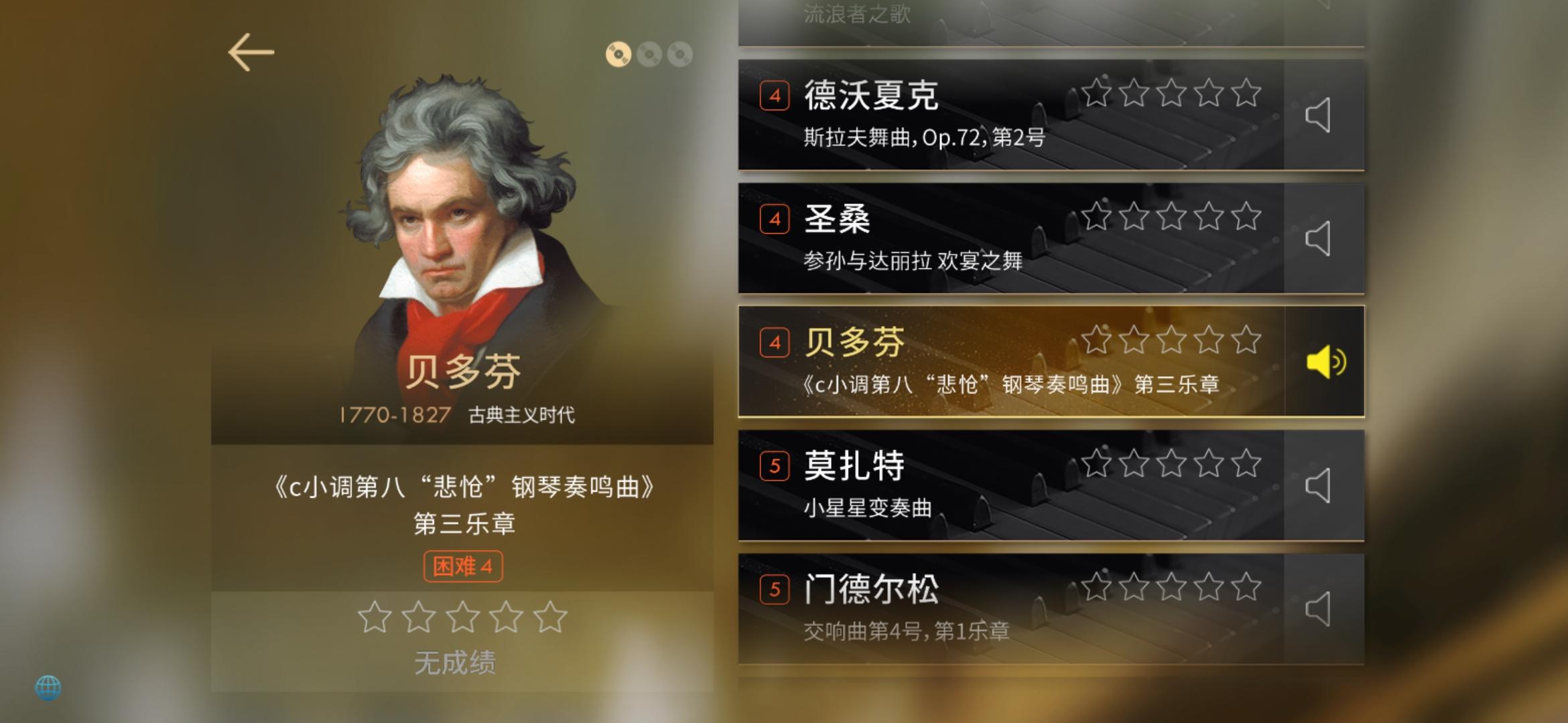 标题是贝多芬悲怆奏鸣曲第三乐章,实际上游戏的音乐是第二乐章希望能尽快修改,很糟心的!
