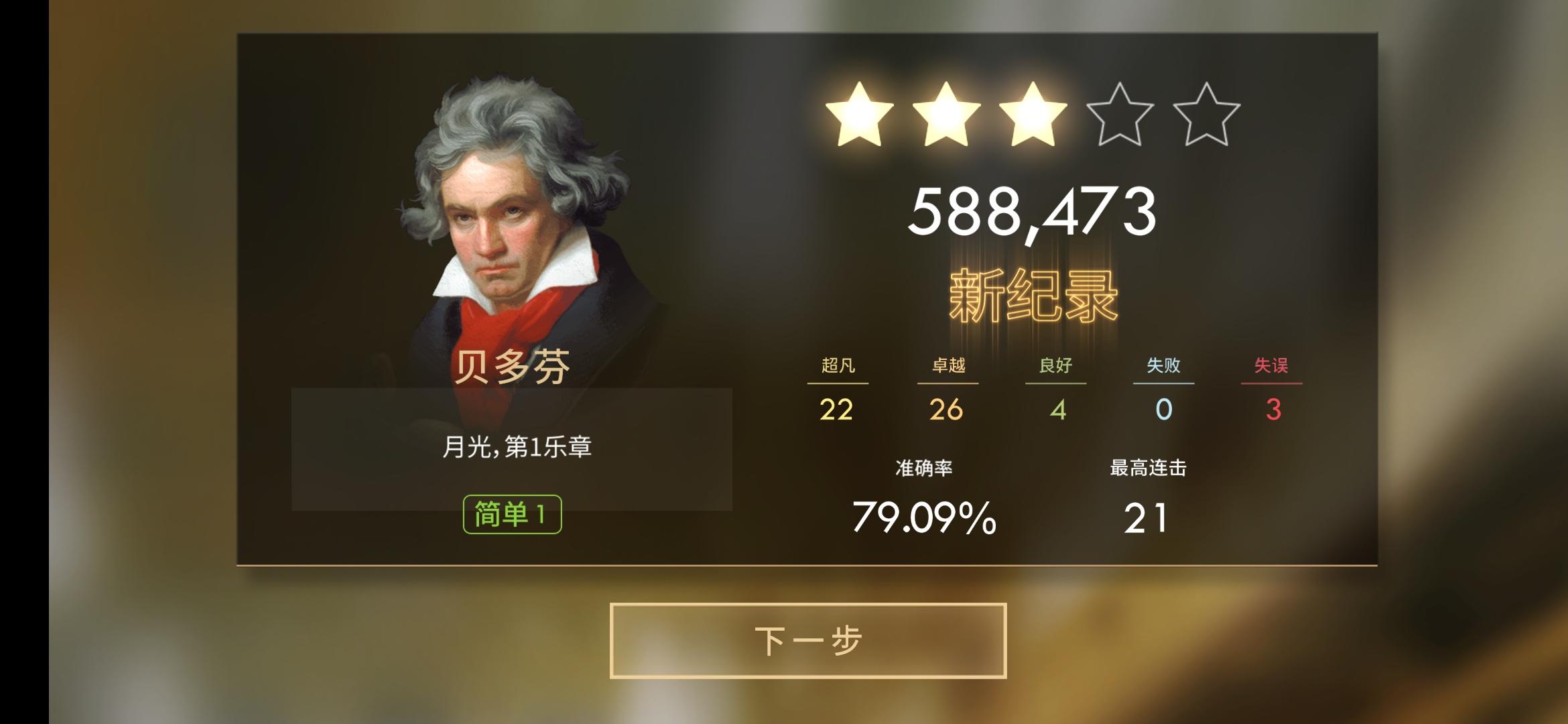 怎么说呢,这款游戏是真的非常和我的胃口,音乐贴合节奏,让你仿佛就像在弹真正钢琴一般的感觉(虽然我没弹过),而且音乐十分的典雅,并不沉闷,能陶冶你的情操,我玩了国际服,个人认为最大的缺点就是:体力根本不够用!每30分钟回一点,真正意义上的防沉迷!你玩完了要么去休息要么看广告,一来二去的难免会有点小情绪……第二:判定很容易exllent,明明感jio很贴合节奏但它就是给你判定成exllent,可能是我