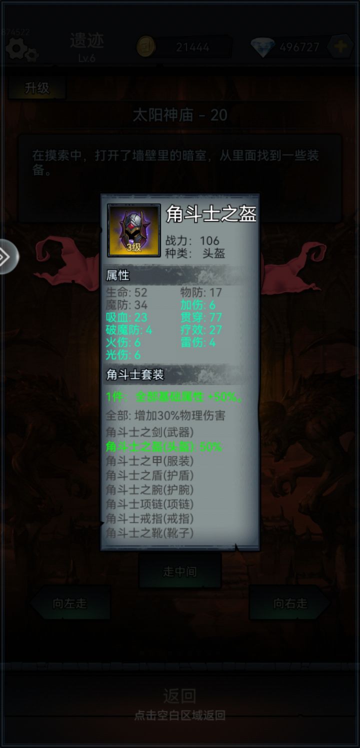 遗迹掉落物品奖励好弱,升级到6级,可以前进60步,但是竟然不随着角色等级提升而提升难度和产出,导致这里刷日常太没有乐趣就给我一个3级的套装,苦瓜脸