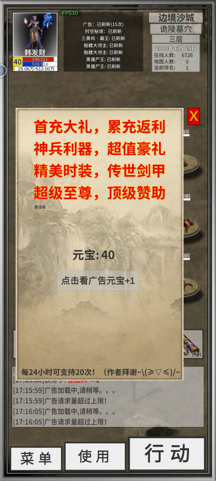 什么时候能修复一下后期伤害超过一万卡怪的问题,战士就靠开天烈火打伤害,这后期还要手动开关防止最后一卡怪,太麻烦了