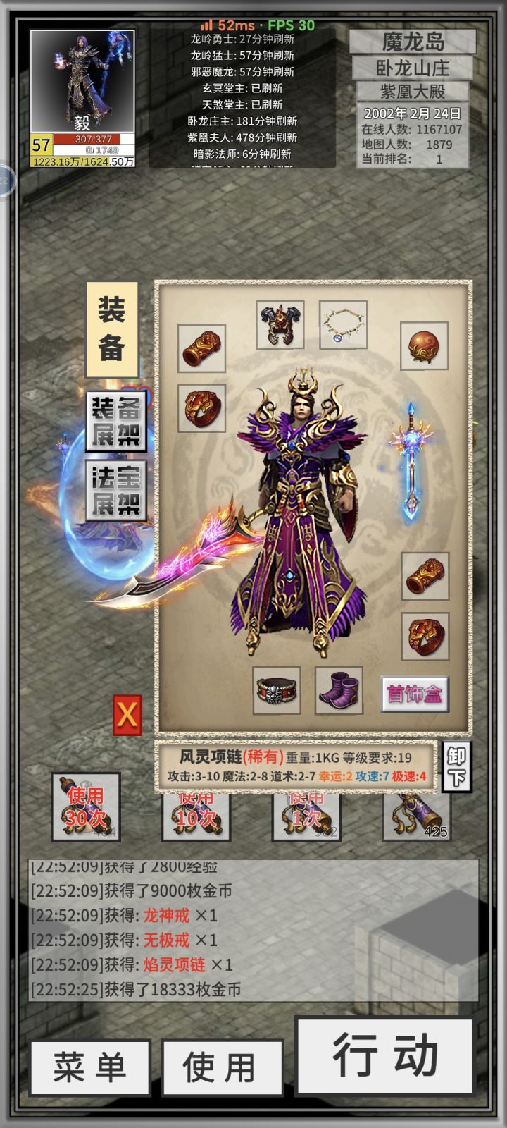 那些说穿不上的,你但凡多去刮刮后面的BOSS弄弄展架,就不会穿不上了,43级,穿别的高道术装备再努力上个5-6点,能穿极光套了