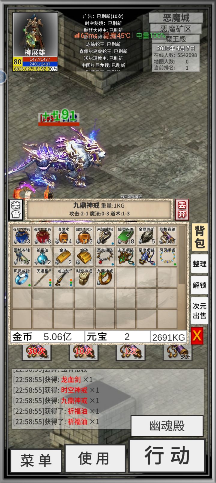 本来准备打一下boss就睡觉。结果大魔王来了个双特。正好可以把0~2道的九鼎换下。