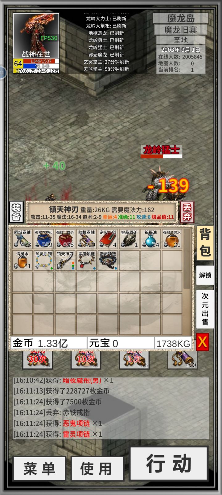 第一次出的加2幸运项链可惜是道士的