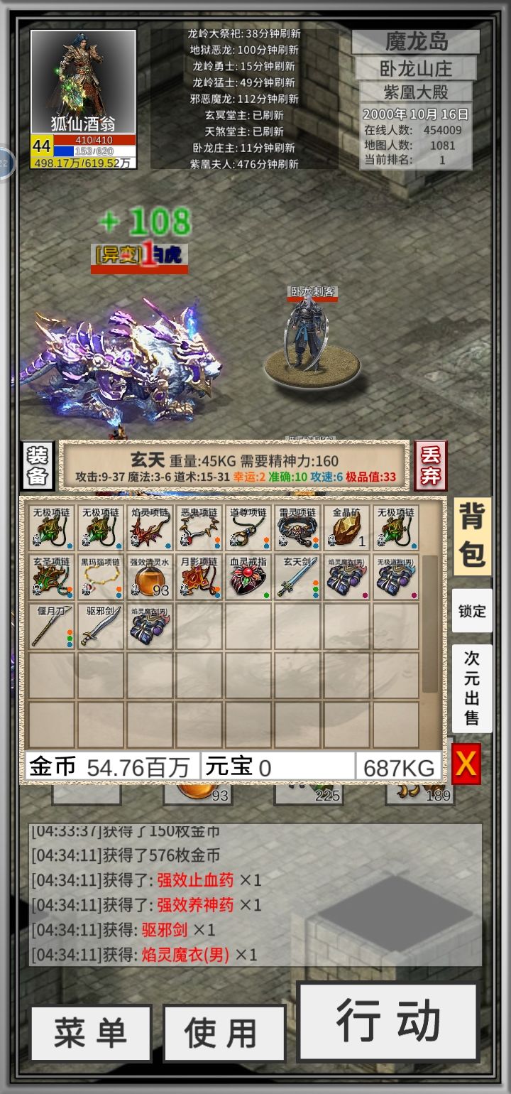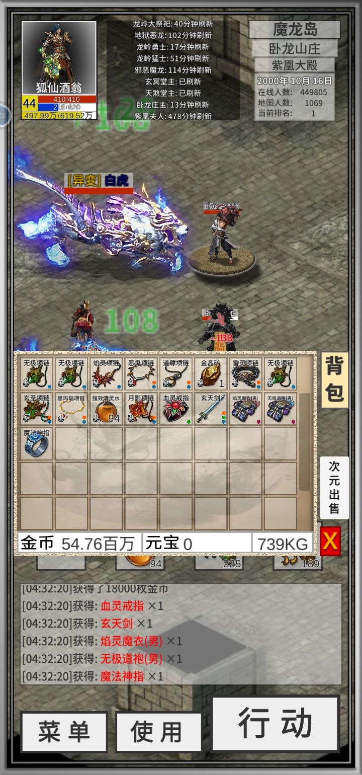 删了道士号重玩。建立了法师号玩了四天。好像招宝宝运不错。除了三只不是,一直都是变异。但是第一只和第五只好奇怪。第一只攻击高但是没什么用。让我放了。第五只就是垃圾。留下高血高防的挡挡攻击用。