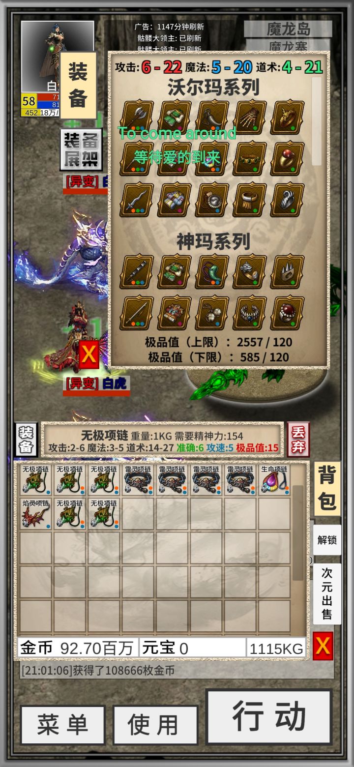 耗光了所有资源存货,这强到十不是人玩的,差把速八屠龙和运二速五的好项链,基本就是毕业了,特戒什么的就看脸了