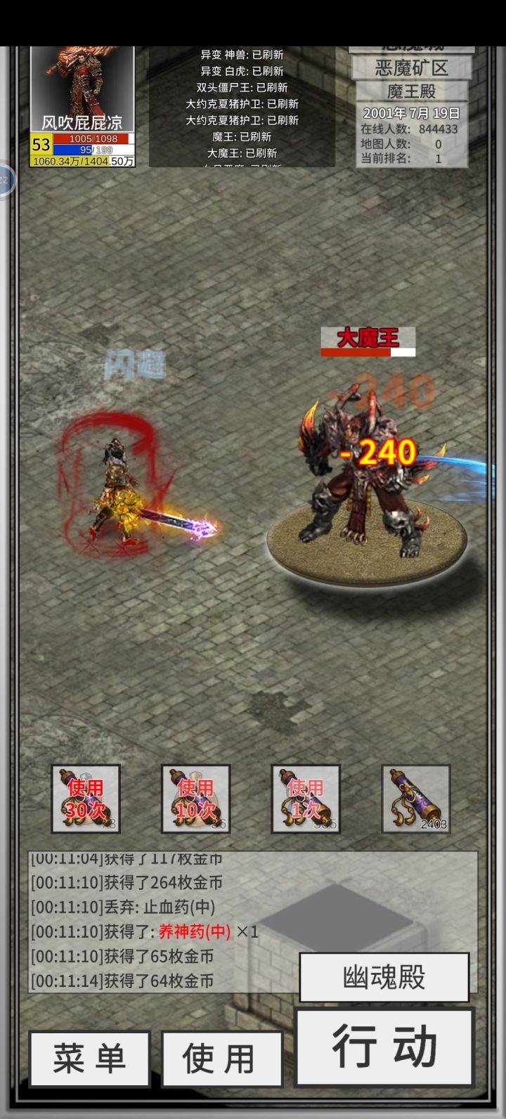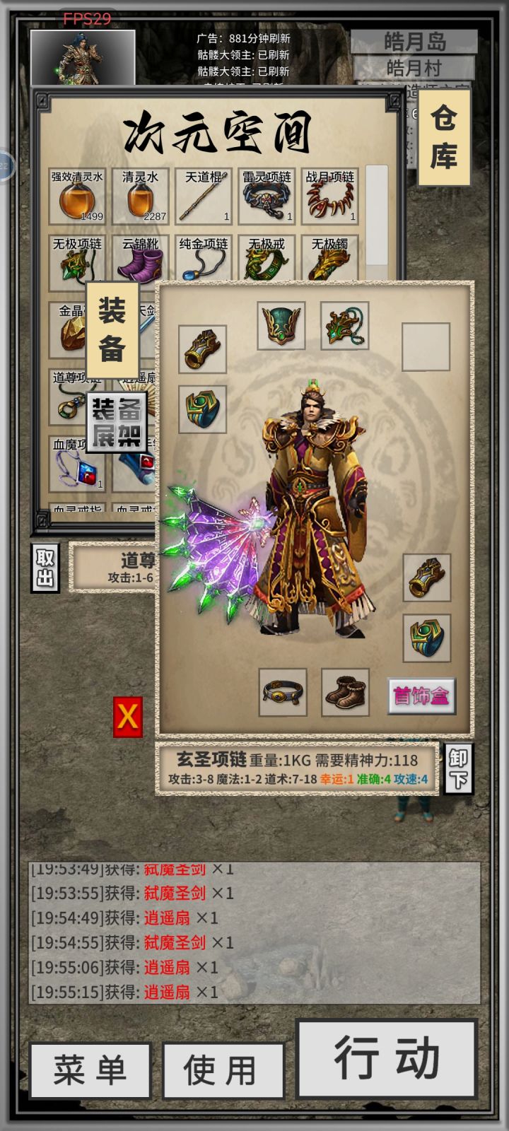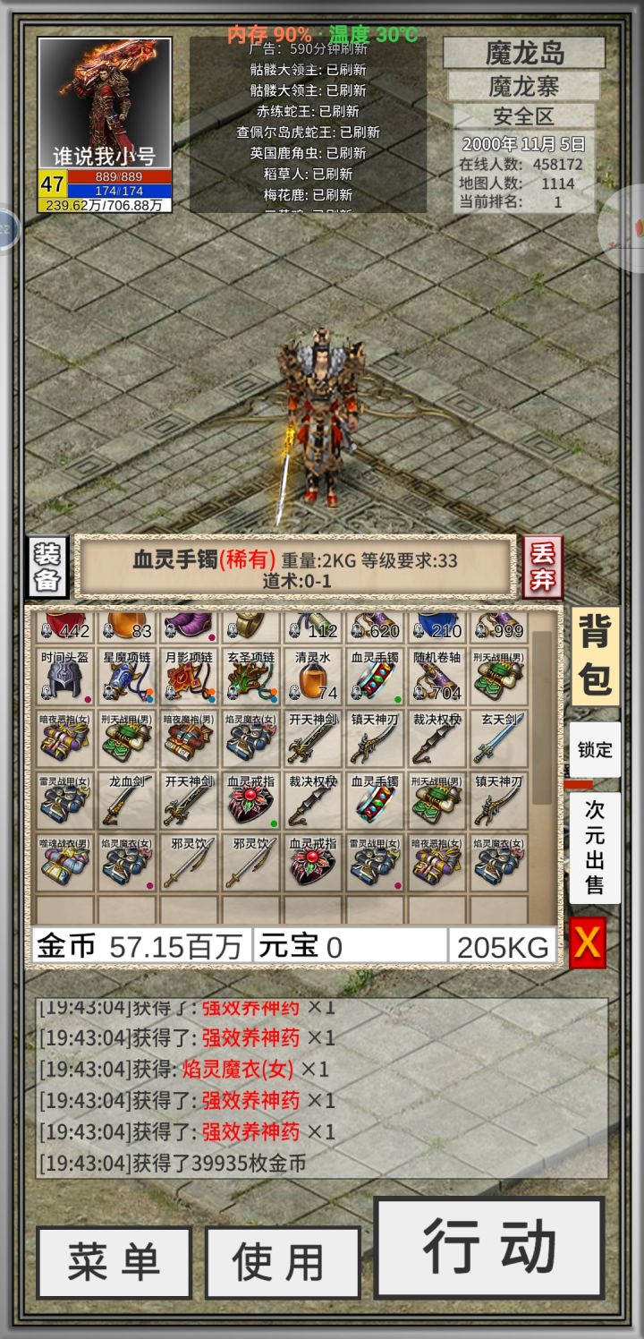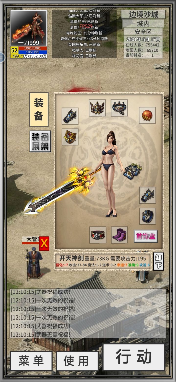 打完夫人还以为不掉特戒这次拉了,一看武器,夫人牛逼!喝了800祝福油想直接上7,失败了。买了400瓶成功上6,收手不喝了。