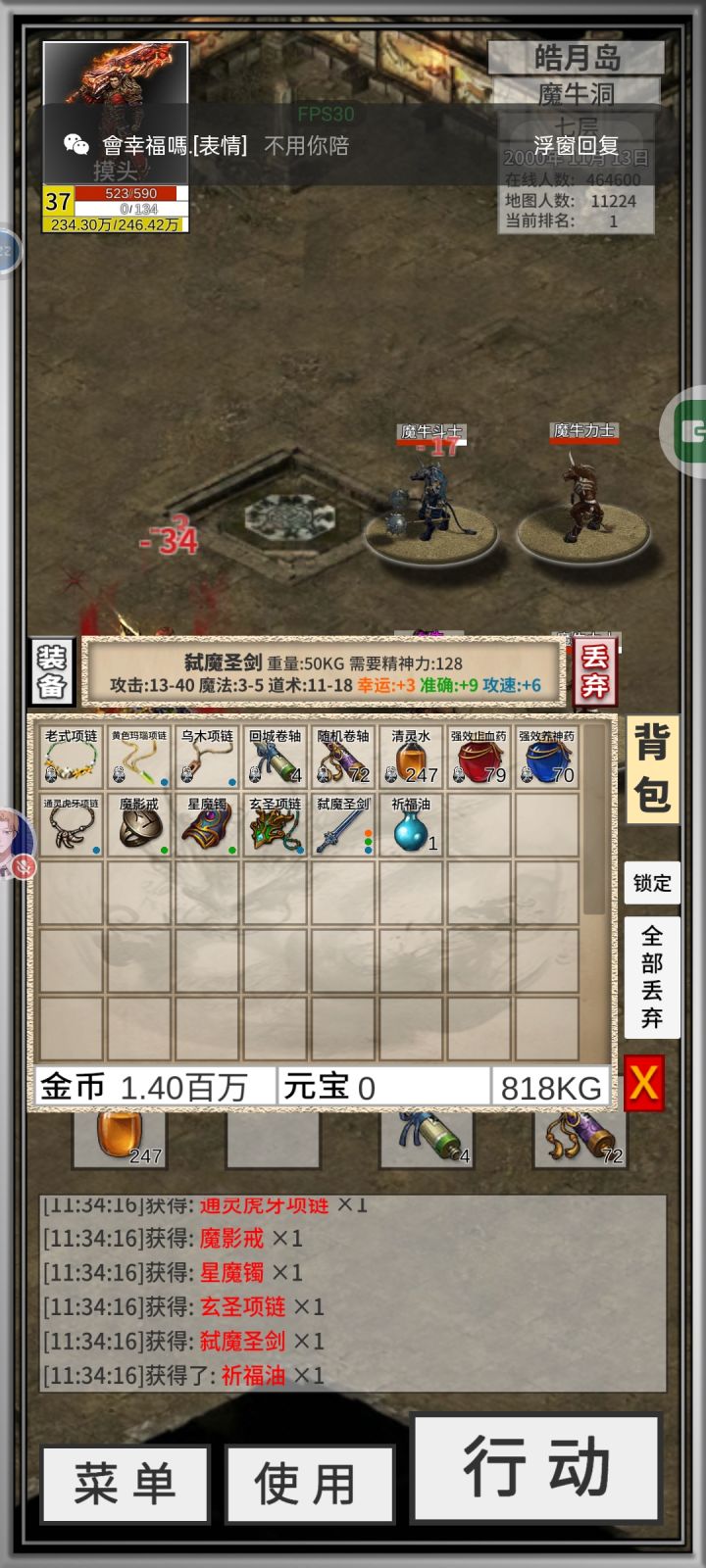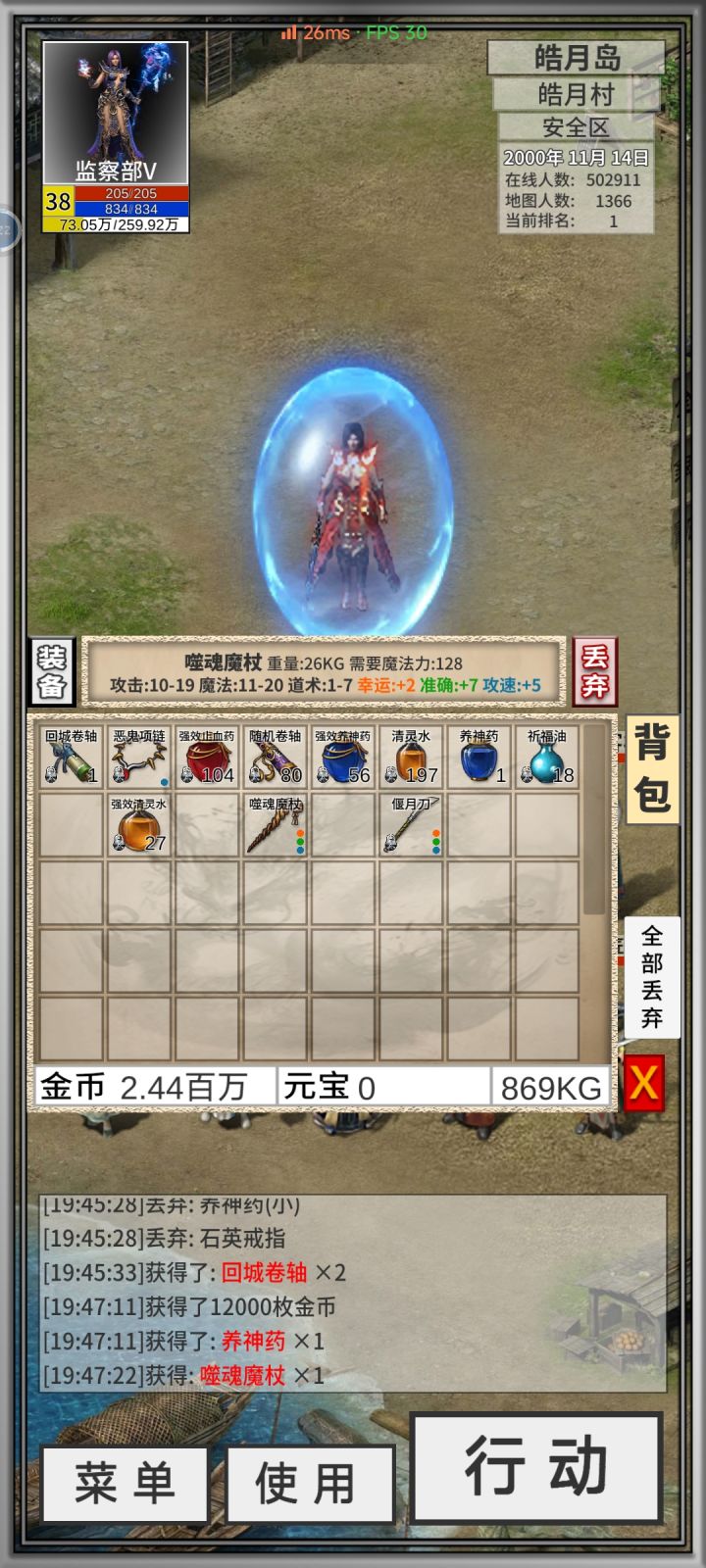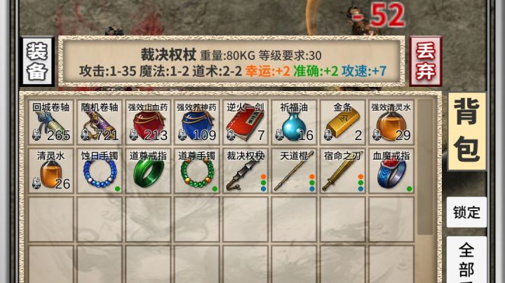 boss打到一半,五十瓶祈福下去直接从运2堆到运6,这应该是更新前,这6运可以算毕业的武器了吧,现在也就算还可以的过度武器了,有个运2速4戒指