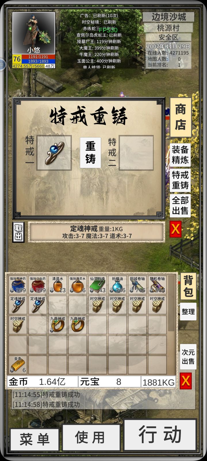 白天打算开矿砸武器,开了300个原矿,70纯度以上的就4块。。。然后去重铸戒指,出来两个毕业特戒。。
