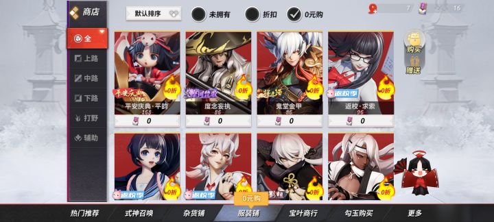 平常玩的式神就这几个,如果有好一点我皮肤我也可以去练的