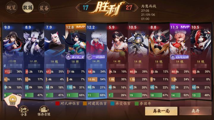 一个专业的犬夜叉眼里不应该只有塔,还应该有输出和人头。其实我没怎么参团,不知道为啥参团率这么高。