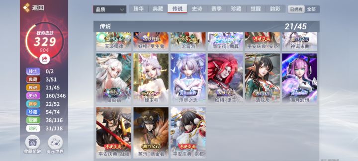 有谁能帮我看看这账号值多少钱吗?妖刀除了典藏皮肤其他传说和史诗都有了。玩了三年想退游了😰