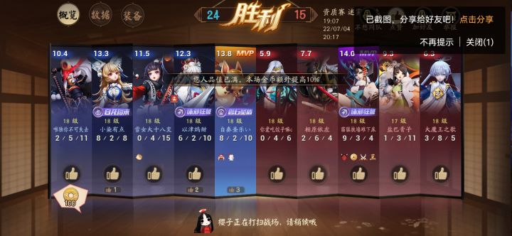 管狐mvp不算下水道没有下水道式神只有不会玩式神的玩家,不知道免控锤的好处AD不如出“大吸血刀”^_^开玩笑的别出大吸血刀