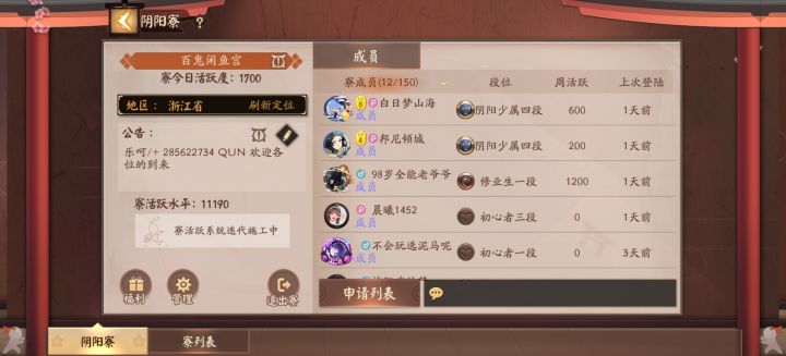本寮之所以建立,是为了集合一批对平安京本身抱有感情而又对资质赛持冷淡态度的,常年在娱乐里划水的老咸鱼。寮的前身(Q群285622734,目前正在考虑转型为寮群)从今年七月开始运行,起初只是为了让一群正常的百鬼弈选手抱团取暖。但由于目前主要及主力队员大多因为学业,生活问题上线时间稳定地少,人手不齐以至于百鬼持续稳定双黑坐牢,一气之下因而跑来此处寻求同道。