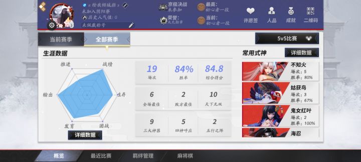 刚玩没多久,感觉每把随缘不太稳,大概是不坑(应该吧)主要是晚上玩的多,九点到十一点的亚子_(•̀ω•́ 」∠)_