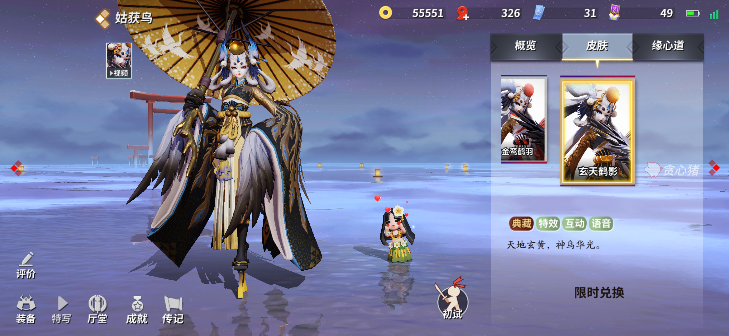 TOP1 姑获鸟·玄天鹤影TOP2 以津真天·血影·绯之翼TOP3 骨女·英魂武姬TOP4 花鸟卷·凰羽仙音TOP5 镰鼬·威镰三世(抓紧时间还可以免费得)