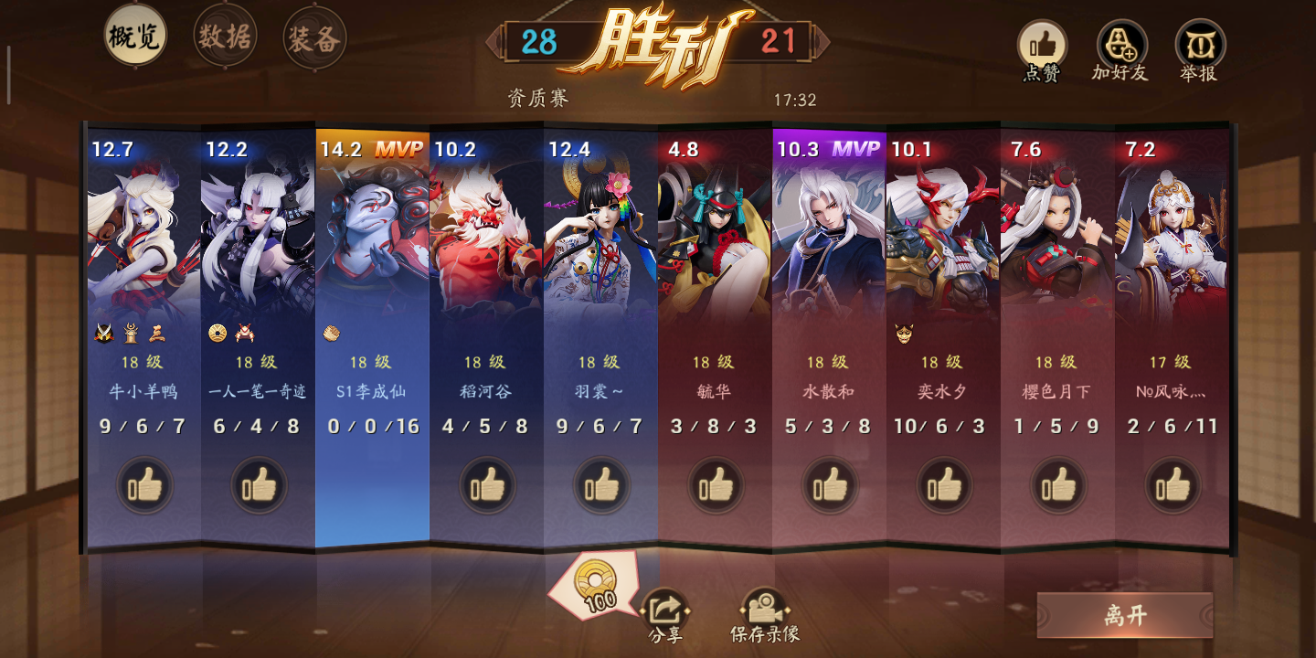 冲着活动来的。这也是数据,评分低的话不要嫌弃我菜。然后呢。以前打的好的肯定有。记不清了。也就最近的有一把还行吧我和朋友在奶茶店打游戏。下路被压的很死。但同伴没说什么后面破了高地。但没推了我们。后期之后我,小袖,咸鱼死死控住对面ad。一波翻盘。差点吼出来。奶茶店的人看我们的眼神都挺奇怪的。想想还想笑。
