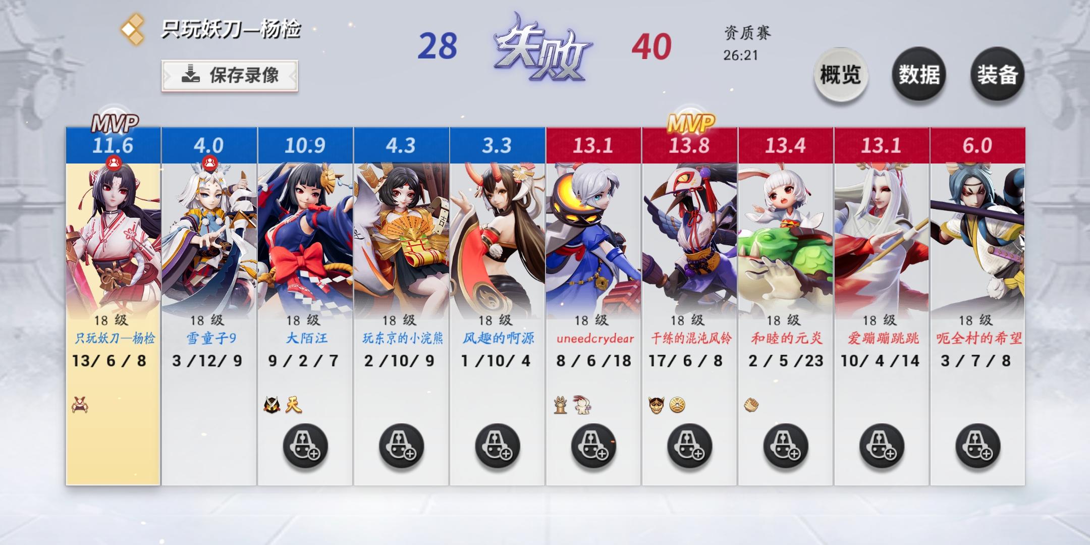个人数据不多截图,毕竟是主逢魔娱乐副上分的小菜鸡。最近印象比较深的是这场大舅。虽然这局数据不怎么样,百分百参团率和破三路翻盘都很少见的。开局记不太清了,打野雪弟弟主抓上路也没帮出太大优势,反而下路被对面抓崩了(我中单不太c,也没打出什么优势),然后就是对面的节奏了,丢大蛇了队友还去打团,是我站出来了!一套组合拳(具体操作大家脑补)在队友优先阵亡的时候拿下伪三杀及时止损。之后就是雪弟弟来回去世,