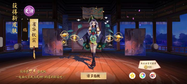 今天祈福纸签单抽出的皮肤,可是没有这个式神😑😑😑