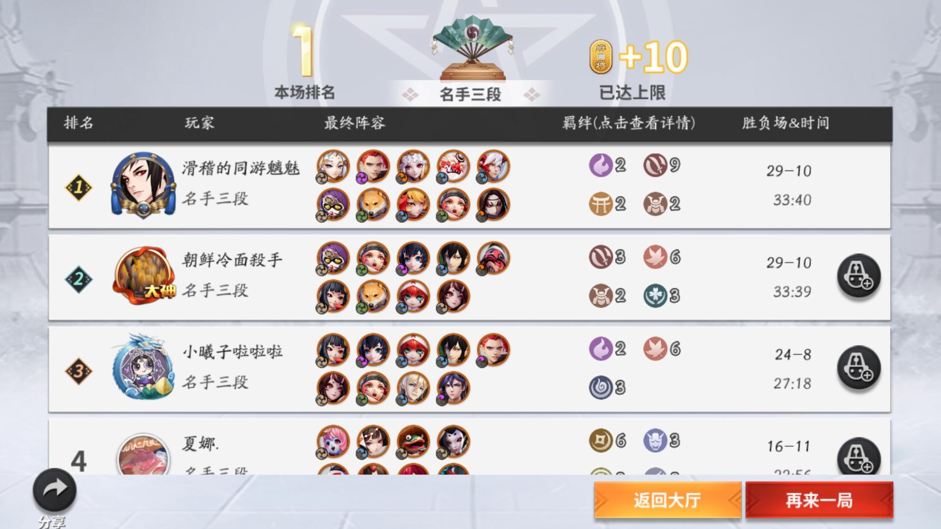 倒数第二波故意少上了雪童子,最后一波搜到了最后一个酒吞,然后卖了鬼使黑。差点把自己玩进去。