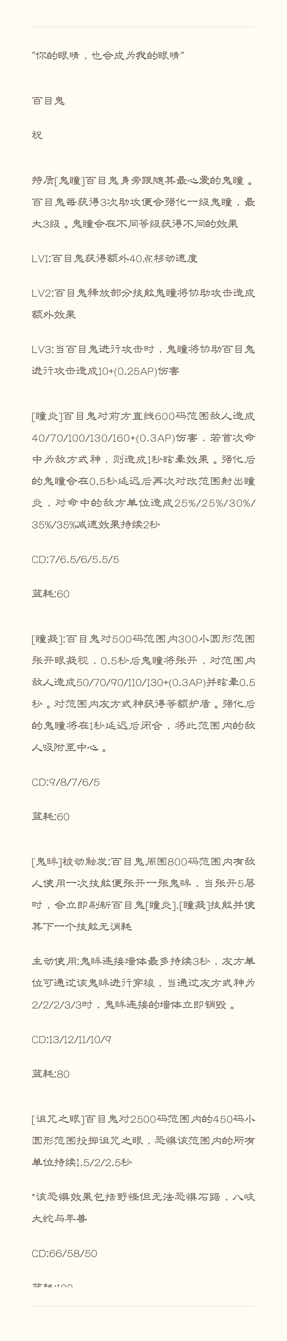 n年前的时候,平安京贴掀起一股自制式神的热潮我也自制了一个百目鬼,没想到跟官方还有相似之处哇哇哇