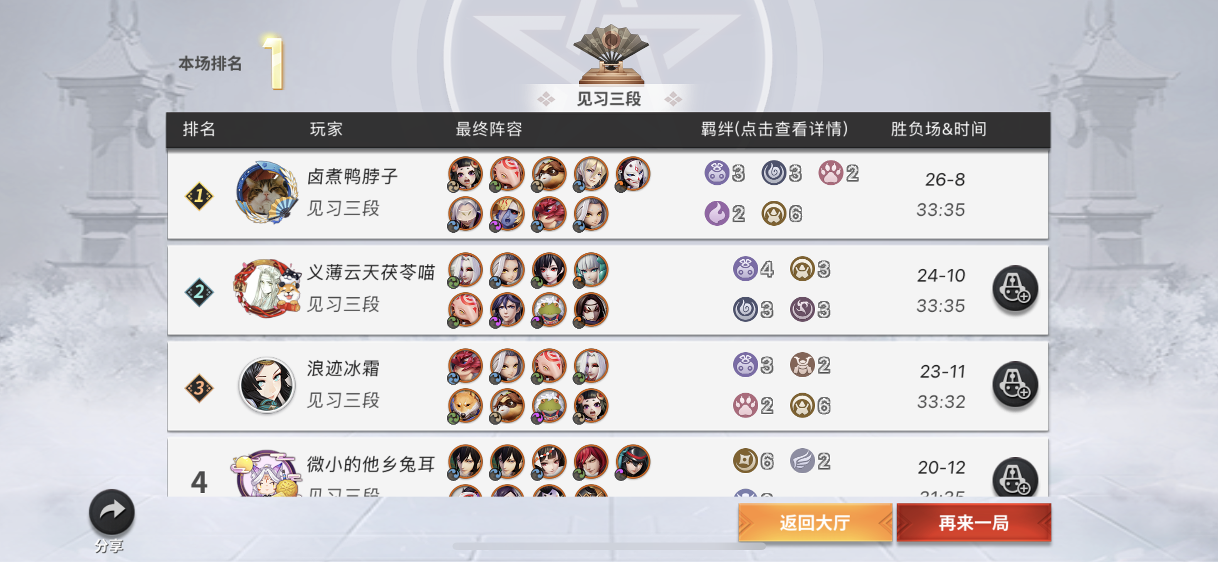 分享一个比较容易凑的阵容,6守+3巫+2兽+3冥界,如果能凑上大妖就更好啦,这一把没摸到什么三星,就一个孟婆三星,也吃鸡了~