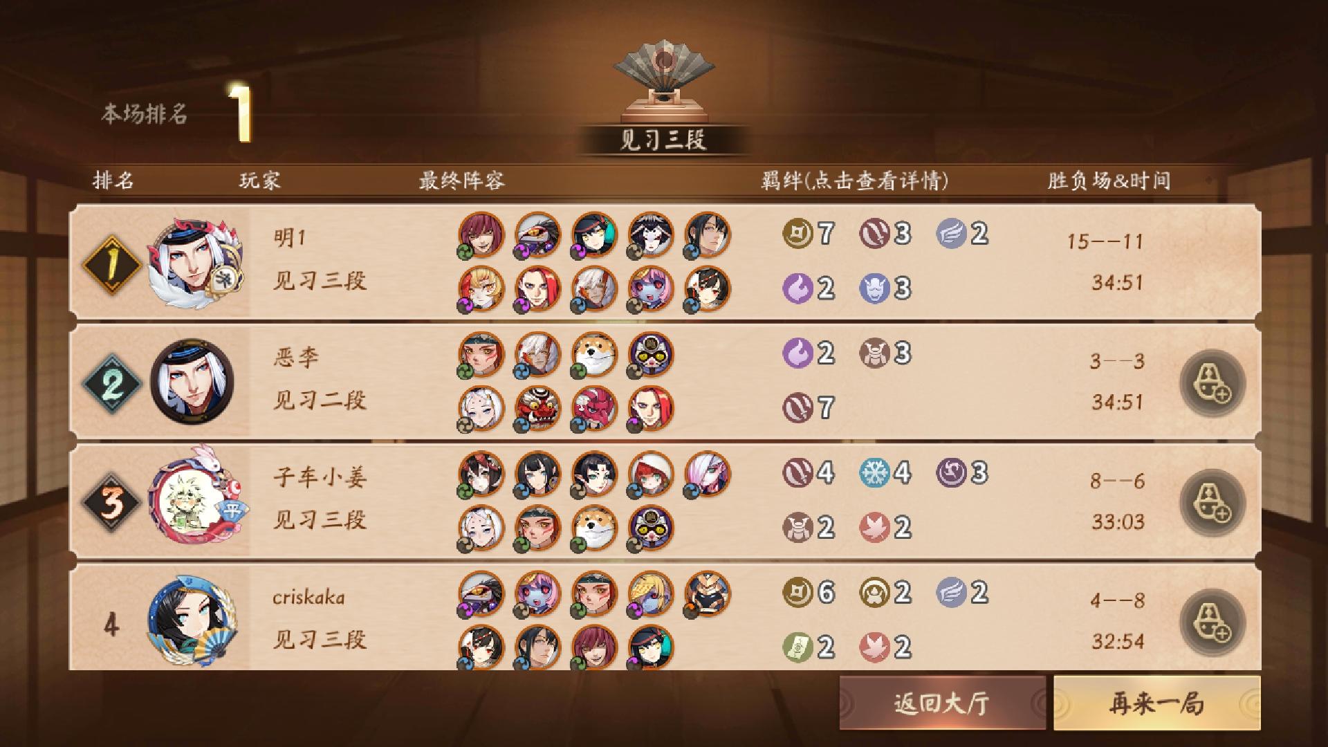 上赛季少允,今天试了下荒川,其实没那么弱伤害主要靠被动平A和3技能的鱼,大招用来调整位置连招:2A1A大A3A或者大A1A2A大A3A,装备下图阴阳术法强,法穿,移速,气合,豹袭/言灵星,破灭难度系数有点高,还是要多练